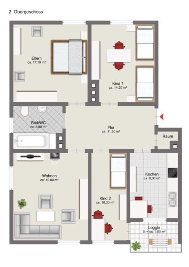 Kind 1: 14,20 m2